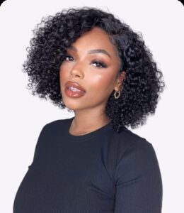 Beginner Friendly Water Wave Minimalist Lace Glueless Short Curly Wig with Bangs