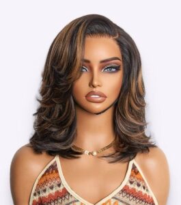 Limited Design-Toffee Brown Mix Blonde Natural Black Layered Cut Glueless 5x5 Closure Lace Bob Wig