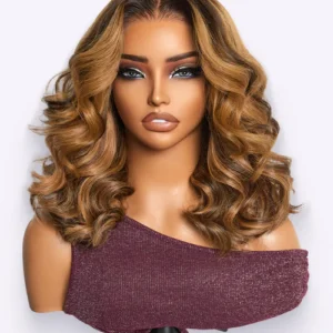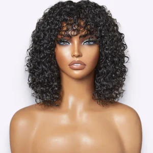 Beginner Friendly Water Wave Minimalist Lace Glueless Short Curly Wig with Bangs